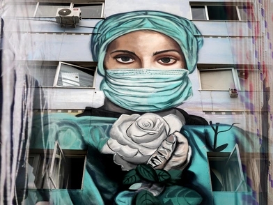 Ο Αντώνης Χάμπας αναλύει και τον συμβολισμό του έργου τέχνης του: «Δεν πρόκειται για υπαρκτό πρόσωπο νοσοκόμας, διότι δεν ήθελα να αδικήσουμε καμία άλλη εργαζόμενη. Πρόκειται για φανταστικό πρόσωπο. Το λευκό χρώμα του λουλουδιού συμβολίζει την ελπίδα. Βλέπουμε σιγά σιγά την ελπίδα της διαφυγής, τώρα που βρισκόμαστε στο τέλος της πανδημίας. Όσον αφορά το είδος του λουλουδιού, ζωγράφισα ένα τριαντάφυλλο, διότι από την αρχαιότητα μέχρι σήμερα βρίθει συμβολισμών. Στην αρχαιότητα, αποτελούσε το φαρμακευτικό σκεύασμα της Αφροδίτης. Αργότερα μεταφέρθηκε και στον Χριστιανισμό με την Παναγία, που είναι προστάτιδα όλων ανθρώπων», αναφέρει χαρακτηριστικά.