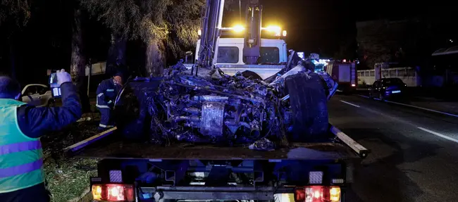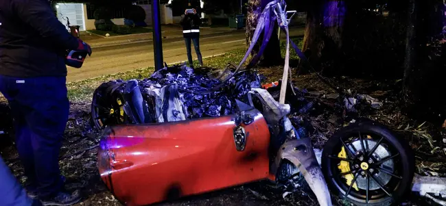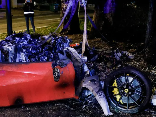 Οι εικόνες από το σημείο όπου έγινε το τροχαίο είναι συνταρακτικές. Τα συνεργεία μαζεύουν ό,τι απέμεινε από την καμένη Ferrari, η οποία από την πρόσκρουση και τη φωτιά που ακολούθησε έχει μετατραπεί σε μια άμορφη μάζα σιδερικών. Δείτε φωτογραφίες από το σημείο του τροχαίου: