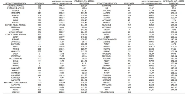 - Κεντρικός τομέας Αθηνών: 1.835 κρούσματα