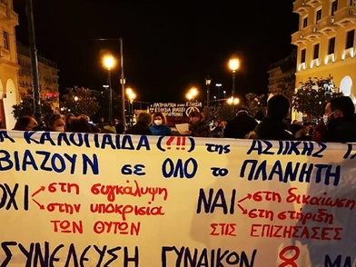 Συγκέντρωση και πορεία σε κεντρικά σημεία της Θεσσαλονίκης διοργανώθηκαν το απόγευμα της Δευτέρας (17/1) μετά από διαδικτυακό κάλεσμα για την υπόθεση ομαδικού βιασμού, τον οποίο κατήγγειλε η 24χρονη που έπεσε θύμα.