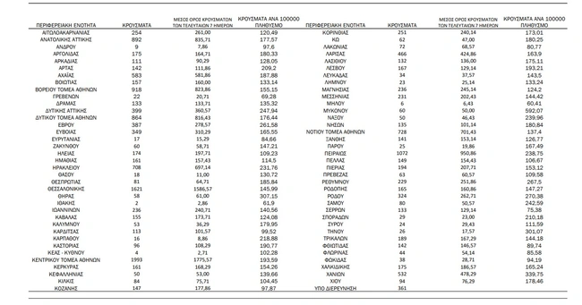 - Κεντρικός τομέας Αθηνών: 1.993 κρούσματα