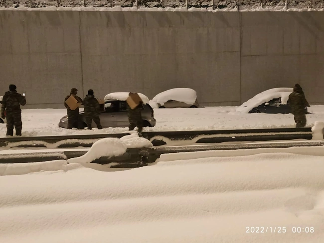 - Εξοδος Κηφισίας (11), 8 οχήματα με 34 άτομα και 2 Μηχανήματα (1 Φορτωτής Γαιών, 1 Ισοπεδωτής Γαιών), με έργο τον απεγκλωβισμό οχημάτων και τον εκχιονισμό Αττικής Οδού. Έχει αποδεσμευθεί 1 όχημα με 4 άτομα.