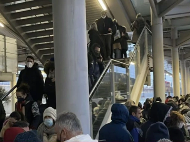 Εικόνες αγανάκτησης και απόγνωσης στον σταθμό του προαστιακού στο «Ελ. Βενιζέλος» με πολίτες που είχαν εγκλωβιστεί στην Αττική Οδό, από τα χιόνια της κακοκαιρίας Ελπίς, να προσπαθούν να επιβιβαστούν σε συρμό που θα τους μετέφερε στον σταθμό Δουκίσσης Πλακεντίας. Άνθρωποι κάθε ηλικίας να περνούν πάνω από τις γραμμές για να βρεθούν στις αποβάθρες ώστε να επιβιβαστούν στον συρμό.