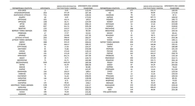 - Κεντρικός τομέας Αθηνών: 1.196 κρούσματα