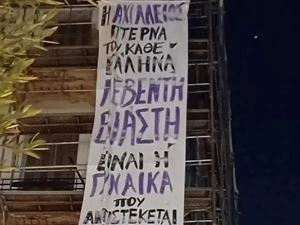 Ενα τεράστιο πανό διαμαρτυρίας για την υπόθεση βιασμού της 24χρονης Γεωργίας Μπίκα, τα ξημερώματα της Πρωτοχρονιάς σε ξενοδοχείο, αναρτήθηκε το βράδυ της Τετάρτης (26/1) στην παλιά κατάληψη της Λεωφόρου Νίκης, στη Θεσσαλονίκη. Στο πανό αναγράφεται χαρακτηριστικά: «Η αχίλλειος πτέρνα του κάθε Έλληνα λεβέντη βιαστή είναι η γυναίκα, που αντιστέκεται».