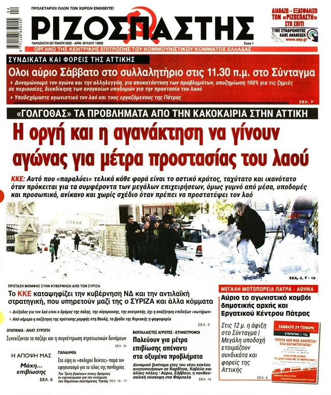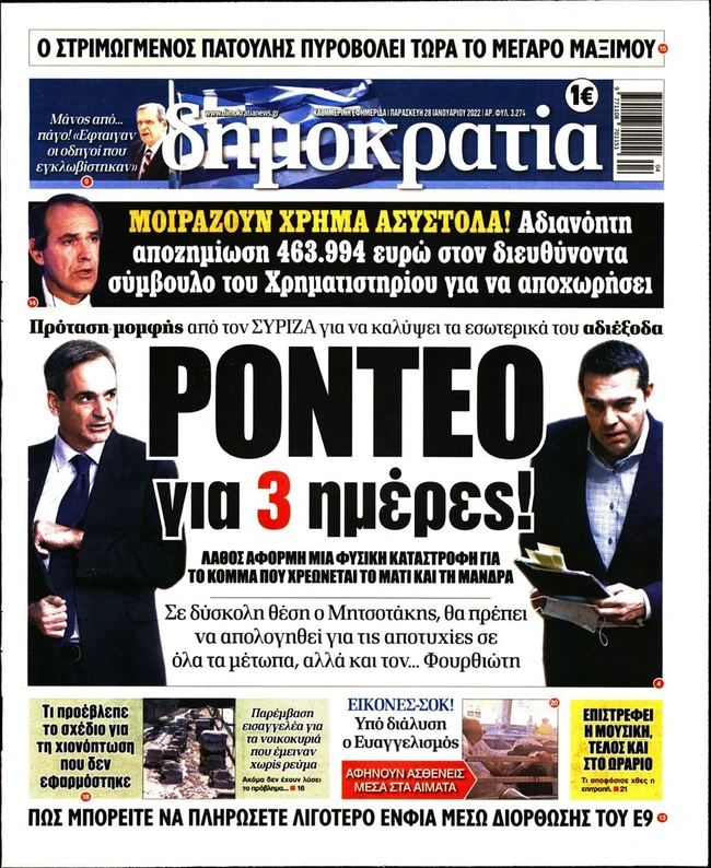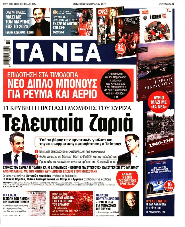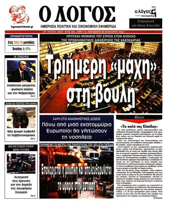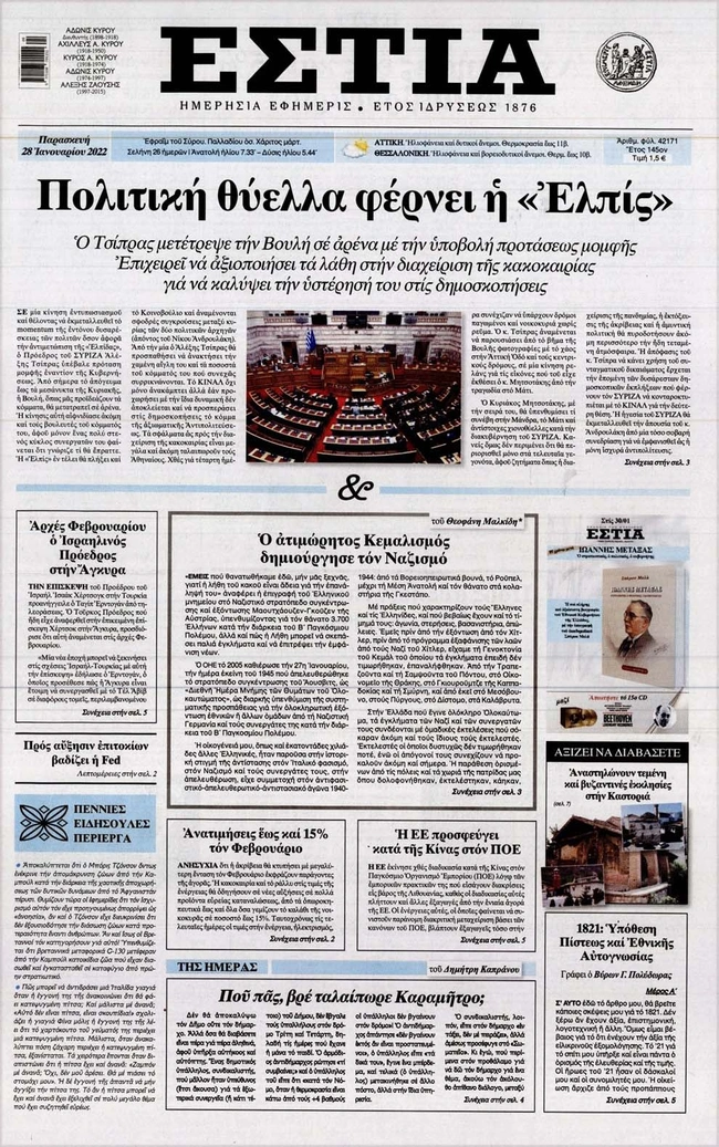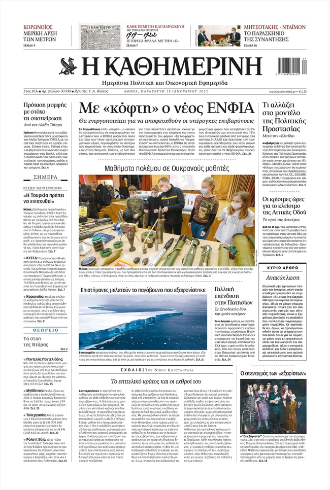 Τα πρωτοσέλιδα των ελληνικών εφημερίδων για σήμερα Παρασκευή 28 Ιανουαρίου. Δείτε τι φιλοξενεί στην πρώτη του σελίδα ο πολιτικός και οικονομικός Τύπος και τα θέματα της επικαιρότητας που ξεχωρίζουν.