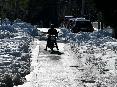 Κι αν οι δρόμοι, έστω οι κεντρικοί σταδιακά ανοίγουν, το μεγάλο πρόβλημα είναι με τα πεζοδρόμια. Αυτά δεν μπορούν να τα καθαρίσουν τα μηχανήματα και πλέον μετά από τόσες ημέρες το χιόνι έχει γίνει πάγος, κάνοντάς μη λειτουργικά καθώς κανείς δεν μπορεί να βαδίζει πάνω τους. Αυτό έχει ως αποτέλεσμα, σε κεντρικούς δρόμους όπως η Μεσογείων οι πεζοί να περπατούν πάνω στον δρόμο ανάμεσα στα βουνά του βρώμικου χιονιού που έχουν πετάξει στο πλάι τα μηχανήματα.