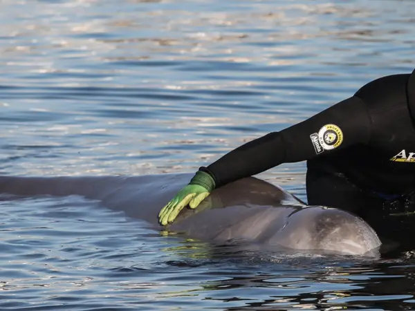 Οι λιμενικοί έχουν ειδοποιήσει ειδικούς από το Ινστιτούτο Κητολογικών Ερευνών, οι οποίοι επισημαίνουν ότι η φάλαινα έχει τραυματιστεί - πιθανότατα από προπέλα - αφού φέρει τραύματα στο ρύγχος της και κάποιες χαρακιές στο σώμα της.