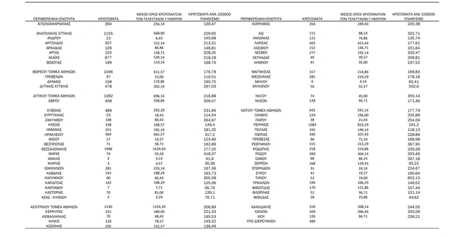- Κεντρικός τομέας Αθηνών: 2.130 κρούσματα