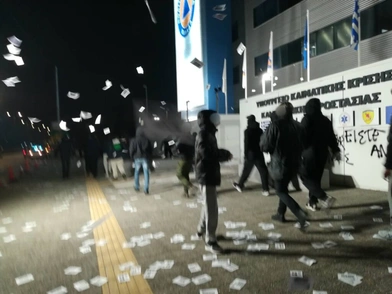 Κάποιες ώρες νωρίτερα τα μέλη του Ρουβίκωνα, χωρίς να γίνουν αντιληπτά αυτή τη φορά, αν κι έδρασαν σε κεντρικότατο σημείο, έφτασαν στο υπουργείο Πολιτικής Προστασίας στην Κηφισίας κι αφού πέταξαν τρικάκια, όπως χαρακτηριστικά αποτυπώνεται και σε φωτογραφία που δημοσίευσαν οι ίδιοι, ένα μέλος της αναρχικής ομάδας κάθισε σε ένα πεζούλι και άρχισε να γράφει συνθήματα στον τοίχο του υπουργείου.