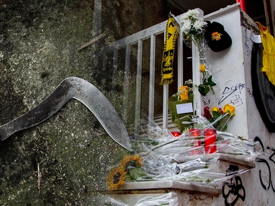 Βρέθηκε το δρεπάνι, με το οποίο δολοφόνησαν μέχρι θανάτου τον 19χρονο Αλκη στη Θεσσαλονίκη, για οπαδικά κίνητρα. Το δρεπάνι με το οποίο σκότωσαν τον 19χρονο Αλκη, εντοπίστηκε λίγα μέτρα πιο κάτω από το σημείο, όπου έπεσε νεκρός ο Άλκης. Το δρεπάνι βρέθηκε κοντά σε κάδο σκουπιδιών και έχει δοθεί για εξέταση, προκειμένου να διαπιστωθεί αν υπάρχουν αποτυπώματα που θα οδηγήσουν τις Αρχές στην εξιχνίαση της υπόθεσης που συγκλονίζει. Υπενθυμίζεται ότι ο 19χρονος, Αλκης Κ., έπεσε νεκρός τα ξημερώματα της Τρίτης στη Θεσσαλονίκη ενώ περπατούσε στην περιοχή του Χαριλάου, πλησίον του Αρη, μαζί με δύο φίλους του.