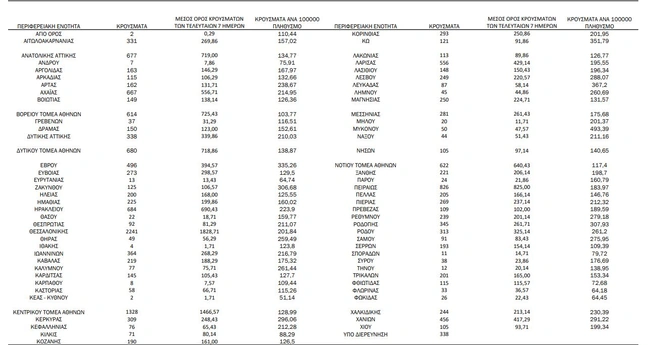Αναλυτικά, η κατανομή των κρουσμάτων σε όλη τη χώρα: