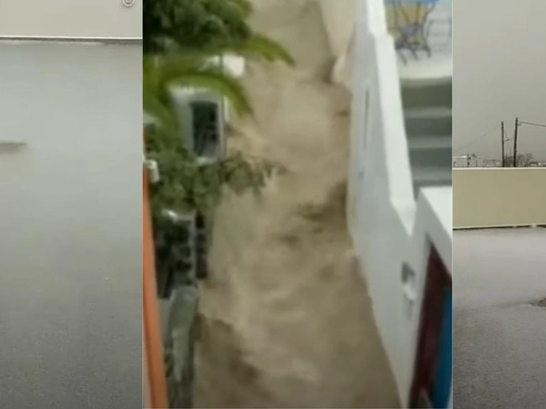 Σφοδρή κακοκαιρία πλήττει τα νησιά των Κυκλάδων. Καταιγίδες, θυελλώδεις άνεμοι, χαλάζι και πλημμυρισμένοι δρόμοι έχουν θέσει σε συναγερμό τις Αρχές. Χαρακτηριστικές είναι οι εικόνες από τη Σαντορίνη όπου έριξε χαλάζι.