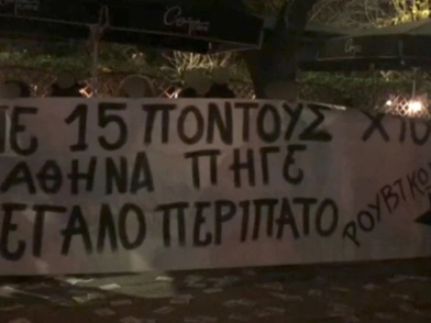 Παρέμβαση σε μια καφετέρια στην οποία μιλούσε ο δήμαρχος Αθηναίων, Κώστας Μπακογιάννης, πραγματοποίησαν μέλη του Ρουβίκωνα. Τα μέλη της αναρχικής συλλογικότητας πέταξαν τρικάκια και άπλωσαν πανό που έγραφε: «Με 15 πόντους χιόνι, η Αθήνα πήγε Μεγάλο Περίπατο».