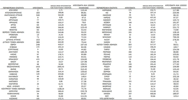- Κεντρικός τομέας Αθηνών: 780 κρούσματα