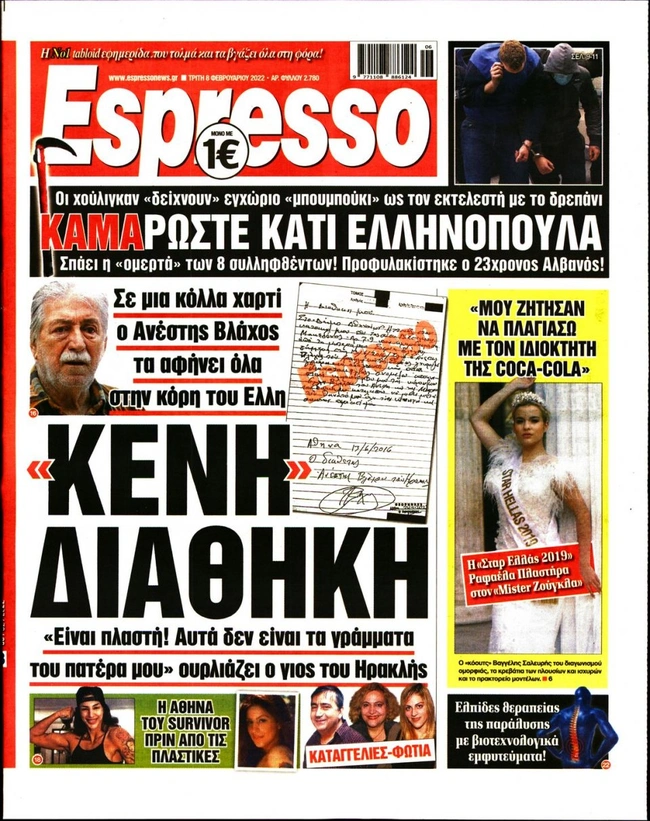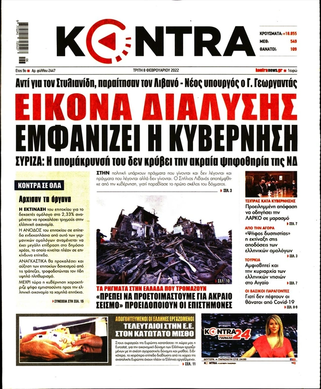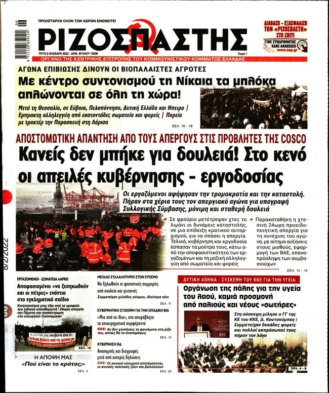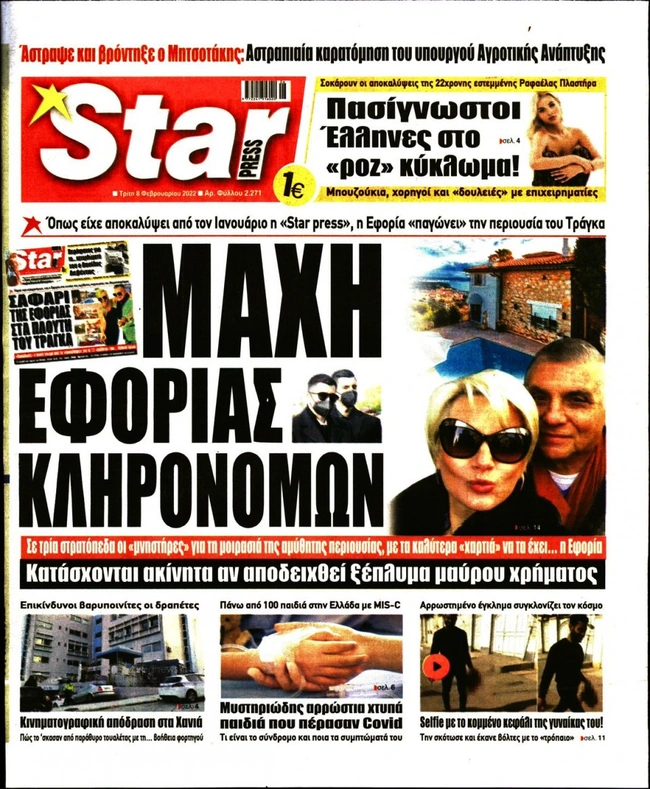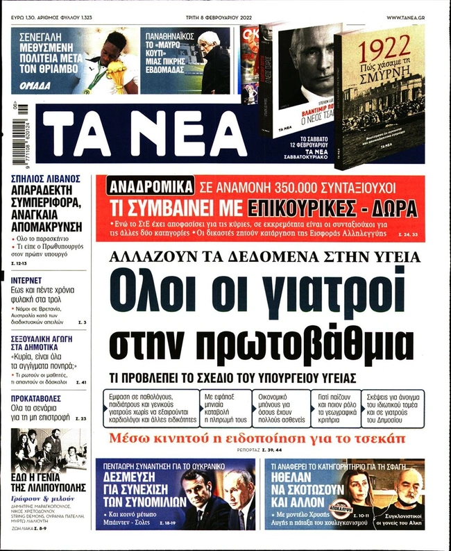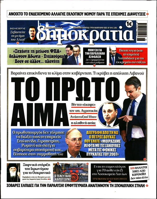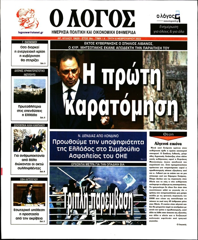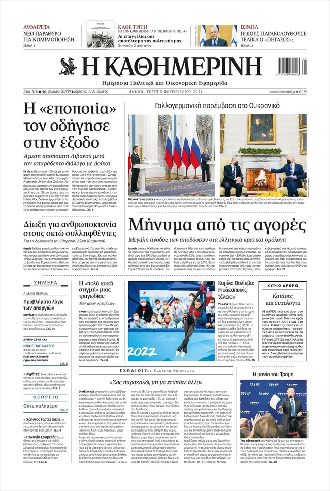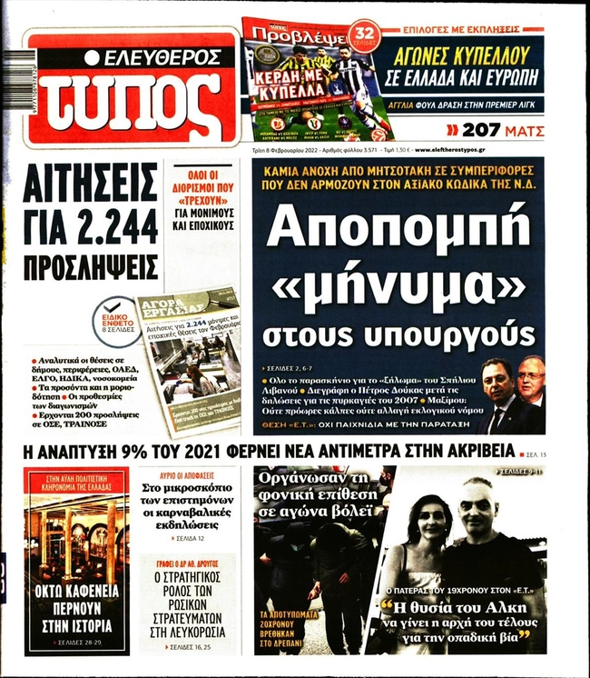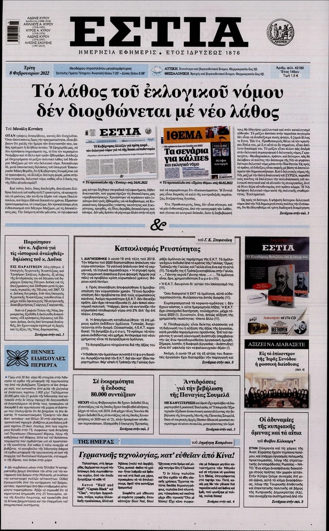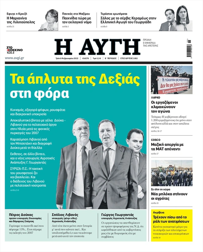 Τα πρωτοσέλιδα των ελληνικών εφημερίδων για σήμερα Τρίτη 8 Φεβρουαρίου. Δείτε τι φιλοξενεί στην πρώτη του σελίδα ο πολιτικός και οικονομικός Τύπος και τα θέματα της επικαιρότητας που ξεχωρίζουν.