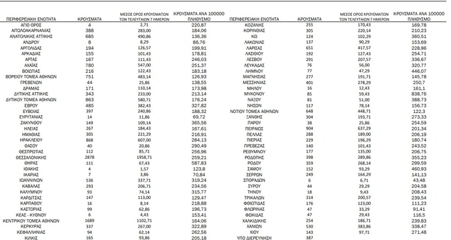 - Κεντρικός τομέας Αθηνών: 1.689 κρούσματα