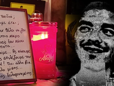 «Γιατί γίναμε έτσι…». «Όλοι φταίμε… Ας κάνουμε κάτι». «Είσαι και δικό μας παιδί». «Έρχομαι και συ στην αγκαλιά των λουλουδιών, το χλωμό πρόσωπό σου χρωματίζει η τρεμάμενη φλόγα των κεριών». Εκατοντάδες μηνύματα, ποιήματα, λόγια αγάπης, συμπαράστασης και θλίψης για τη δολοφονία του 19χρονου Αλκη Καμπανού, πλαισιωμένα από φανέλες και κασκόλ όλων των ομάδων και υπέροχες παιδικές ζωγραφιές συνθέτουν τον «πίνακα» των αφιερωμάτων που άφησαν -και συνεχίζουν να αφήνουν- καθημερινά χιλιάδες πολίτες.