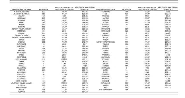 - Κεντρικός τομέας Αθηνών: 1.315 κρούσματα
