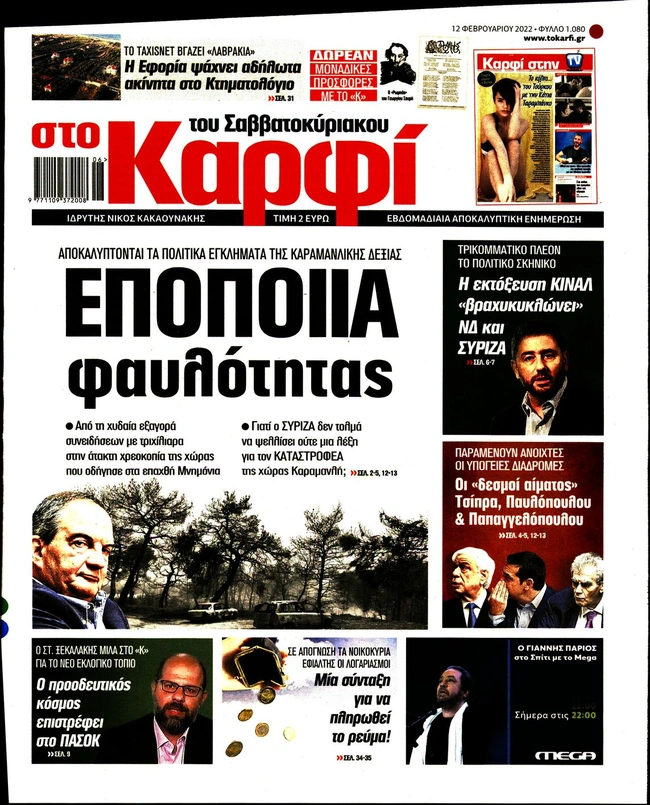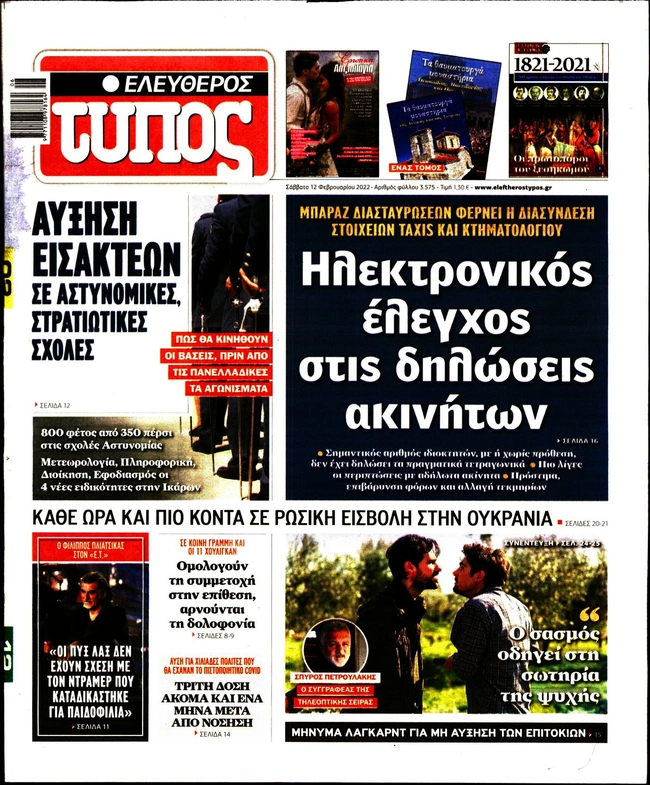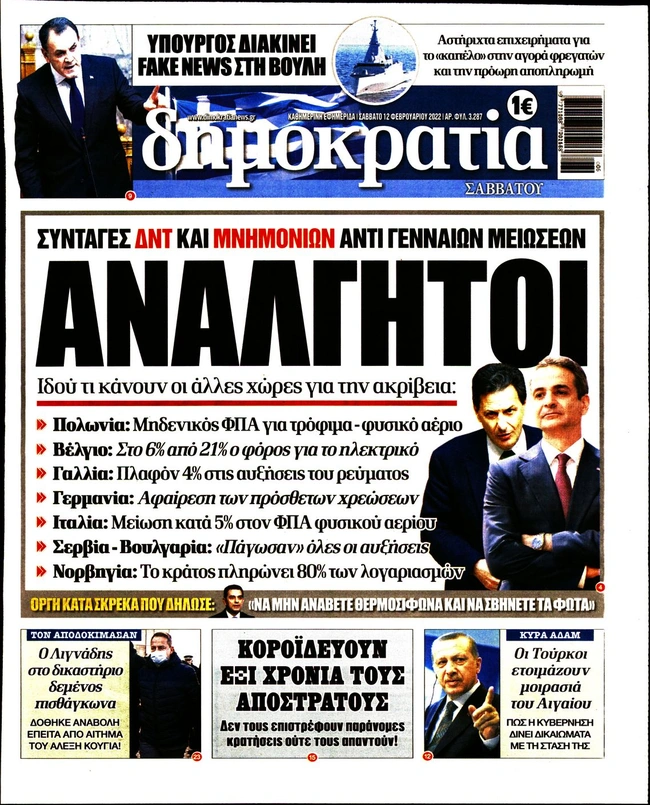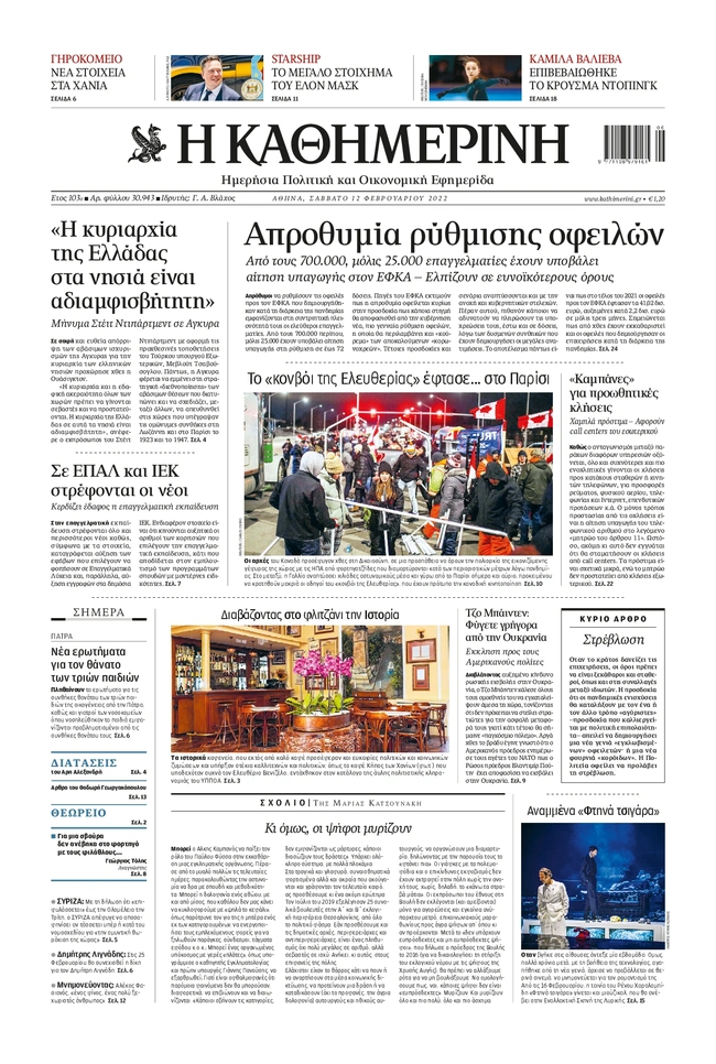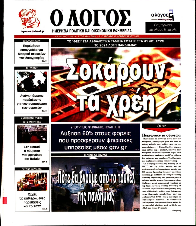 Τα πρωτοσέλιδα των ελληνικών εφημερίδων για σήμερα Σάββατο 12 Φεβρουαρίου. Δείτε τι φιλοξενεί στην πρώτη του σελίδα ο πολιτικός και οικονομικός Τύπος και τα θέματα της επικαιρότητας που ξεχωρίζουν.