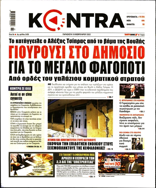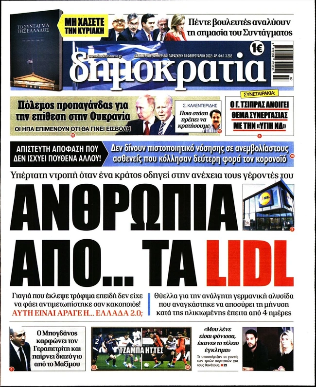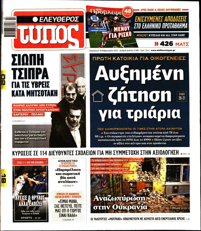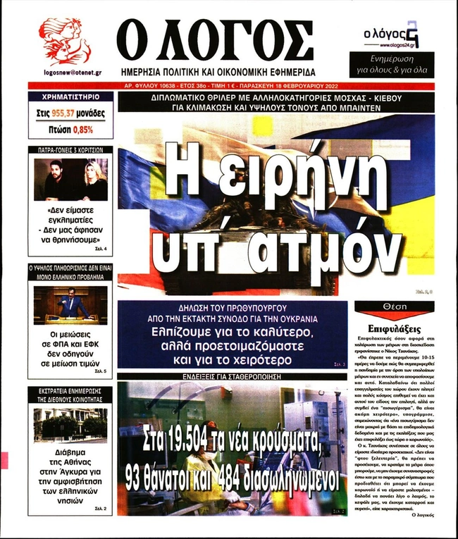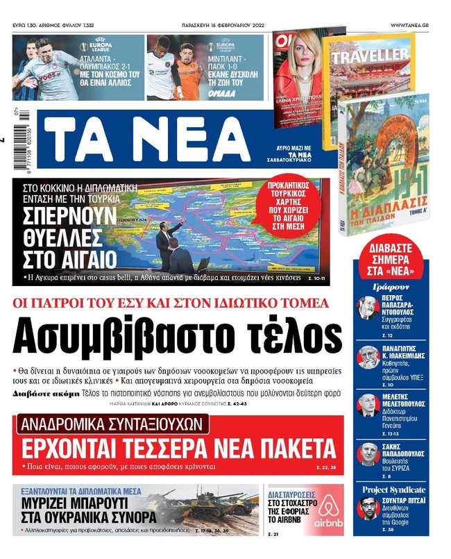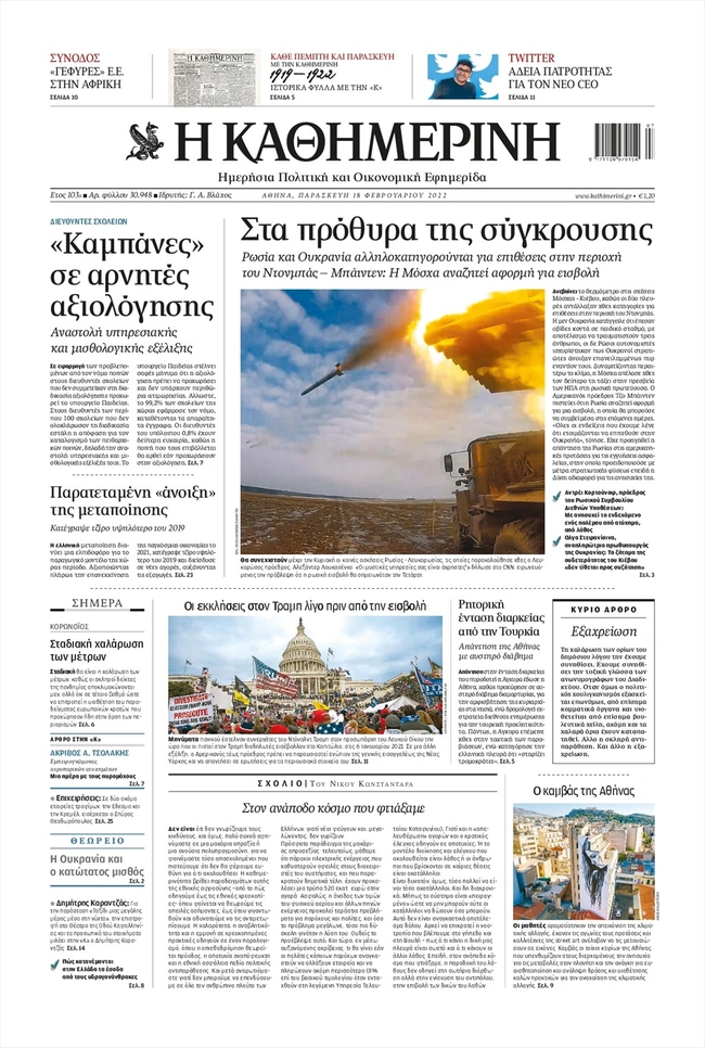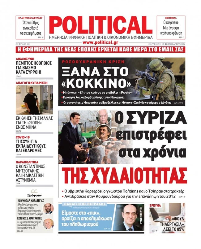 Τα πρωτοσέλιδα των ελληνικών εφημερίδων για σήμερα Παρασκευή 18 Φεβρουαρίου. Δείτε τι φιλοξενεί στην πρώτη του σελίδα ο πολιτικός και οικονομικός Τύπος και τα θέματα της επικαιρότητας που ξεχωρίζουν.