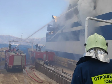 Εξακολουθεί να φλέγεται το πλοίο Euroferry Olympia που τυλίχθηκε στις φλόγες νωρίς το πρωί της Παρασκευής (18/2) ανοιχτά της Κέρκυρας. Οι άνδρες του Λιμενικού και της Πυροσβεστικής συνεχίζουν από την πλευρά τους να δίνουν μάχη με το χρόνο, τόσο για τους 12 αγνοουμένους όσο και για τη ρυμούλκησή του σε ασφαλές σημείο μέσα στις επόμενες ώρες. Το «Euroferry Olympia» έχει ήδη προσδεθεί από ρυμουλκό και δεν κινδυνεύει πλέον να παρασυρθεί και να προσαράξει στα αβαθή ή να προσκρούσει πάνω σε κάποιο άλλο πλοίο. Σύμφωνα με πληροφορίες, στο εσωτερικό του Euroferry Olympia επικρατούν θερμοκρασίες πάρα πολύ υψηλές που φτάνουν τους 500-600 βαθμούς Κελσίου, ενώ στις δεξαμενές του, το πλοίο φέρεται να έχει πάνω από 700 τόνους καύσιμα.
