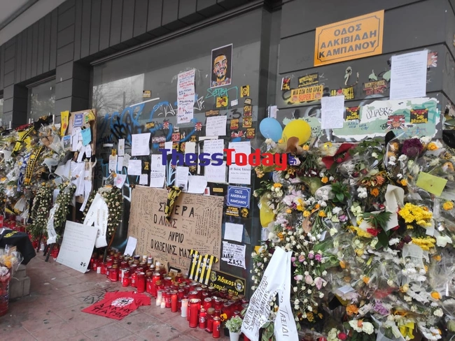 Λίγες ώρες πριν τη διεξαγωγή του ντέρμπι Αρης – ΠΑΟΚ στο «Κλεάνθης Βικελίδης», στη Θεσσαλονίκη, φίλαθλοι του Αρη βρέθηκαν στο σημείο της δολοφονίας του αδικοχαμένου 19χρονου Αλκη Καμπανού. Όπως αναφέρει το thesstoday.gr, φίλαθλοι του Αρη, φορώντας κασκόλ, φούτερ με την αγαπημένη τους ομάδα, και κίτρινες μάσκες προστασίας κατά του κορονοϊού, πέρασαν από το σημείο, άφησαν ένα λουλούδι και άναψαν ένα κεράκι στη μνήμη του αδικοχαμένου Άλκη, δείχνοντας με αυτό τον τρόπο, πως δεν τον ξεχνούν.
