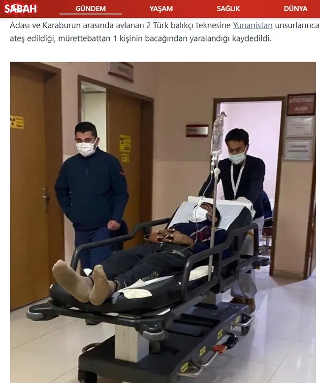 Μάλιστα σύμφωνα με το λιμενικό της Τουρκίας έγινε έρευνα στην περιοχή για να εντοπιστεί το ελληνικό σκάφος δίχως όμως να βρουν οτιδήποτε. Συγκεκριμένα με βάση τα στοιχεία που δίνει το περιστατικό έγινε μεταξύ Χίου και Καραμπουρούν, με αποτέλεσμα έναν τραυματισμό στο πόδι ενώ στη Sabah δημοσιεύεται και η παρακάτω φωτογραφία. Ωστόσο από την ελληνική πλευρά διαψεύδεται το γεγονός πως υπήρξε οποιοσδήποτε τραυματισμός.