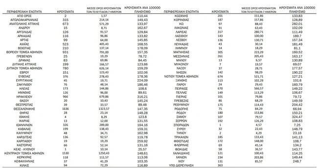 - Νήσων: 142 κρούσματα