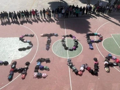 «Καλήμερα και καλό, ειρηνικό μηνά να έχουμε φίλες και φίλοι.... Οι μαθητές, πάντως του 15ου Γυμνασίου Αθηνών στην Κυψέλη, σχημάτισαν αντιπολεμικό μήνυμα με τις τσάντες τους στον προαύλιο χώρο του σχολείου τους και εξέφρασαν την αλληλεγγύη τους στις συμμαθήτριες και στους συμμαθητές τους, στους λαούς των χωρών που εμπλέκονται στον πόλεμο. Οι μαθητές κράτησαν και ενός λεπτού σιγή για τους νεκρούς αδικοχαμένους. Μια χαραμάδα ελπίδας για το σήμερα», αναφέρει η σχετική δημοσίευση στο Facebook.