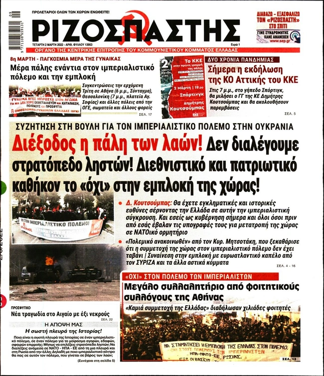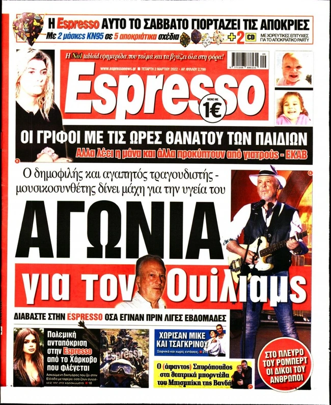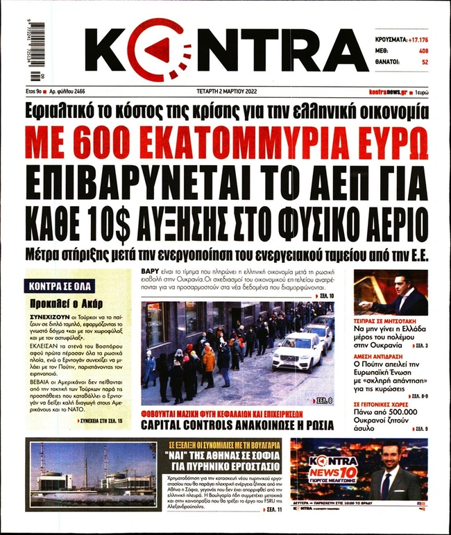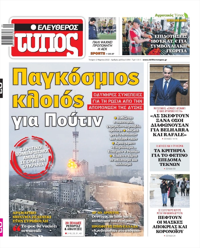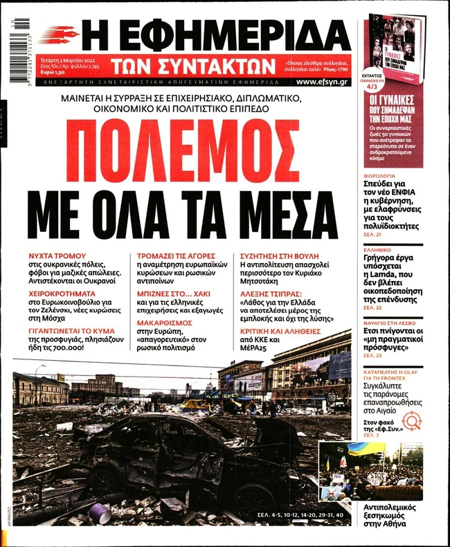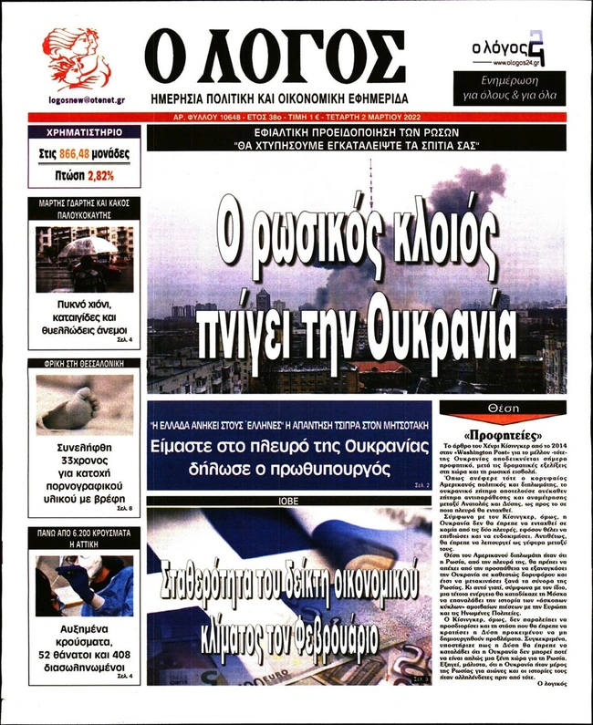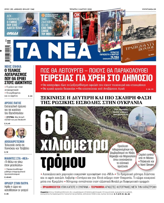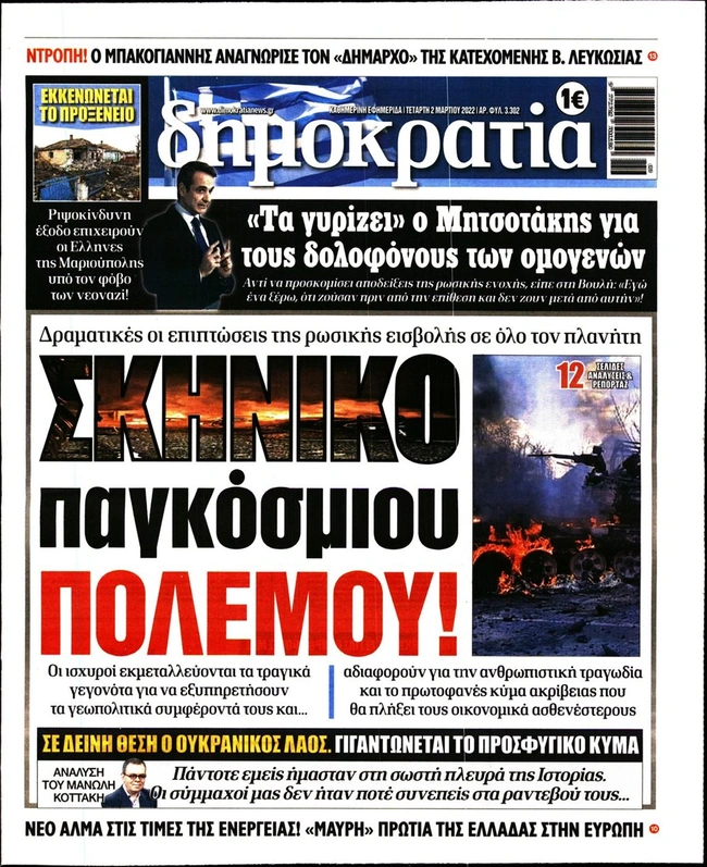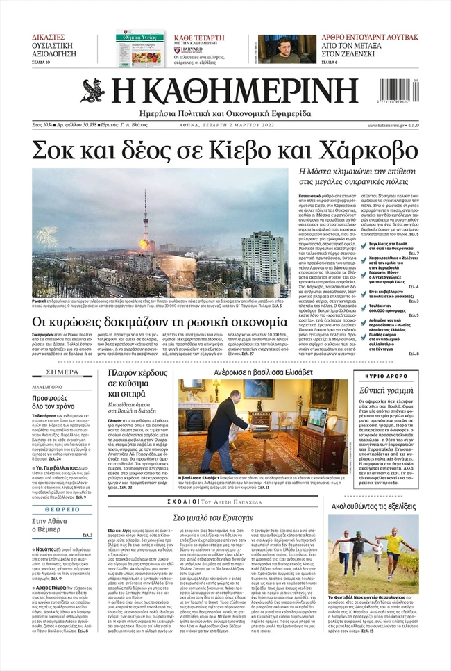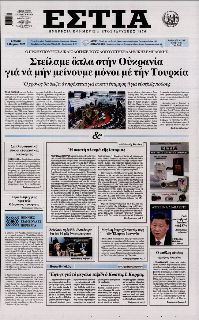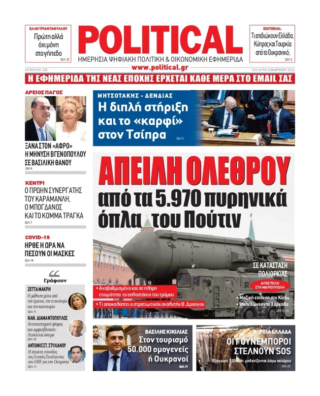 Τα πρωτοσέλιδα των ελληνικών εφημερίδων για σήμερα Τετάρτη 2 Μαρτίου. Δείτε τι φιλοξενεί στην πρώτη του σελίδα ο πολιτικός και οικονομικός Τύπος και τα θέματα της επικαιρότητας που ξεχωρίζουν.