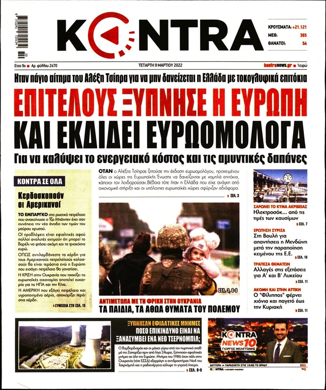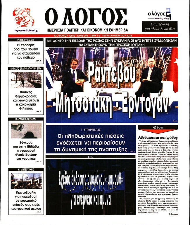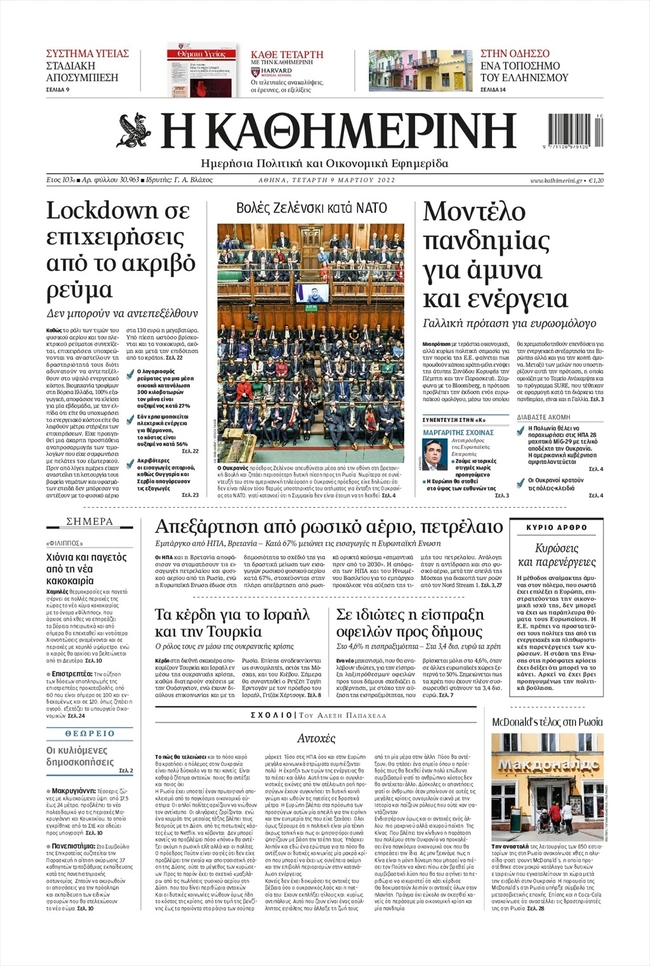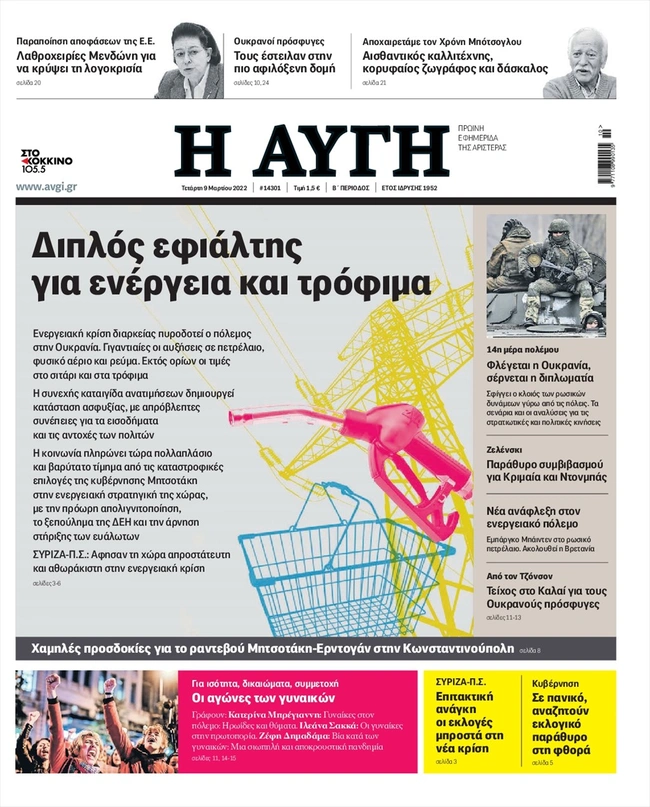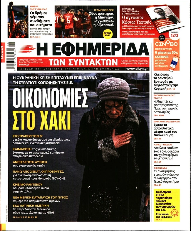 Τα πρωτοσέλιδα των ελληνικών εφημερίδων για σήμερα Τετάρτη 9 Μαρτίου. Δείτε τι φιλοξενεί στην πρώτη του σελίδα ο πολιτικός και οικονομικός Τύπος και τα θέματα της επικαιρότητας που ξεχωρίζουν