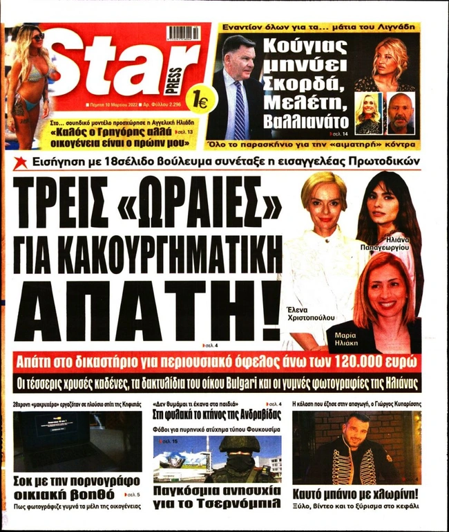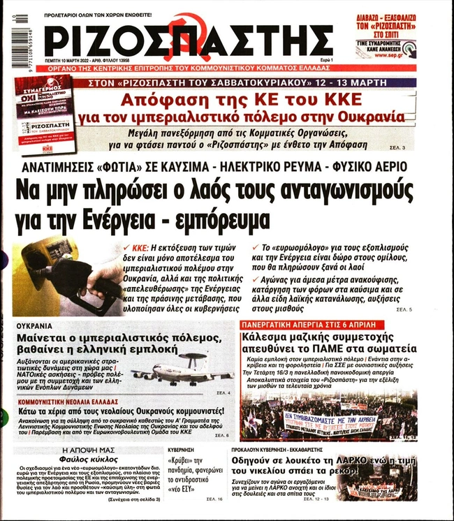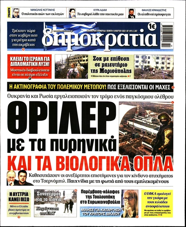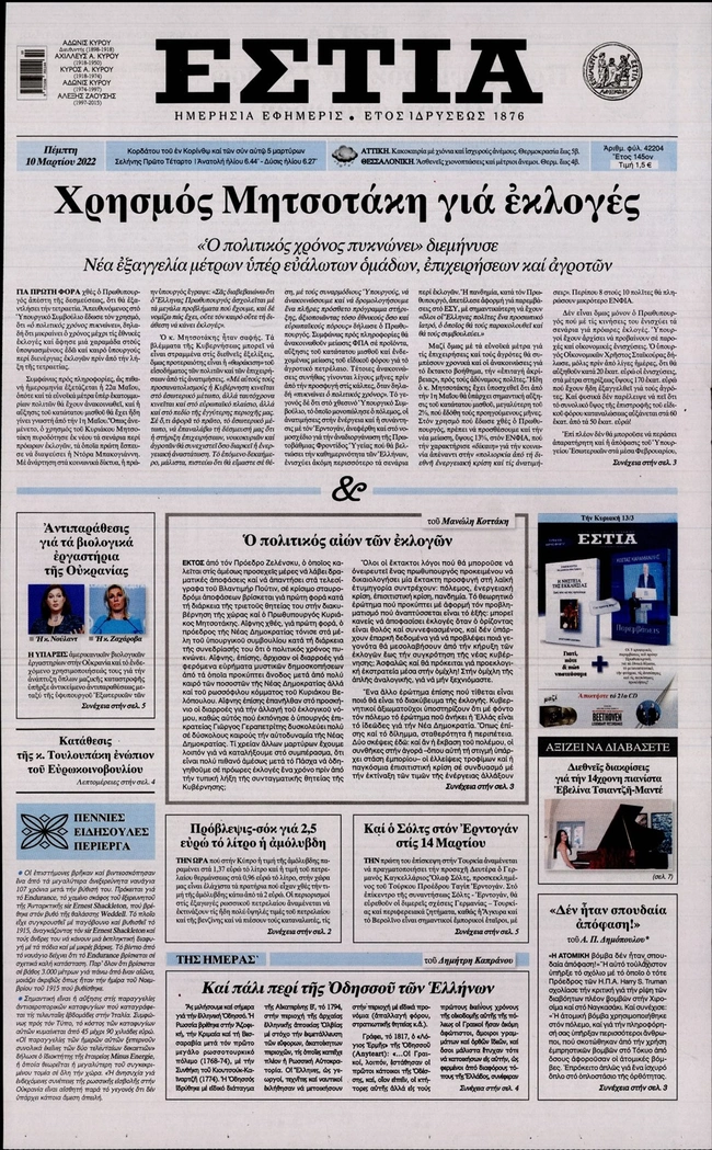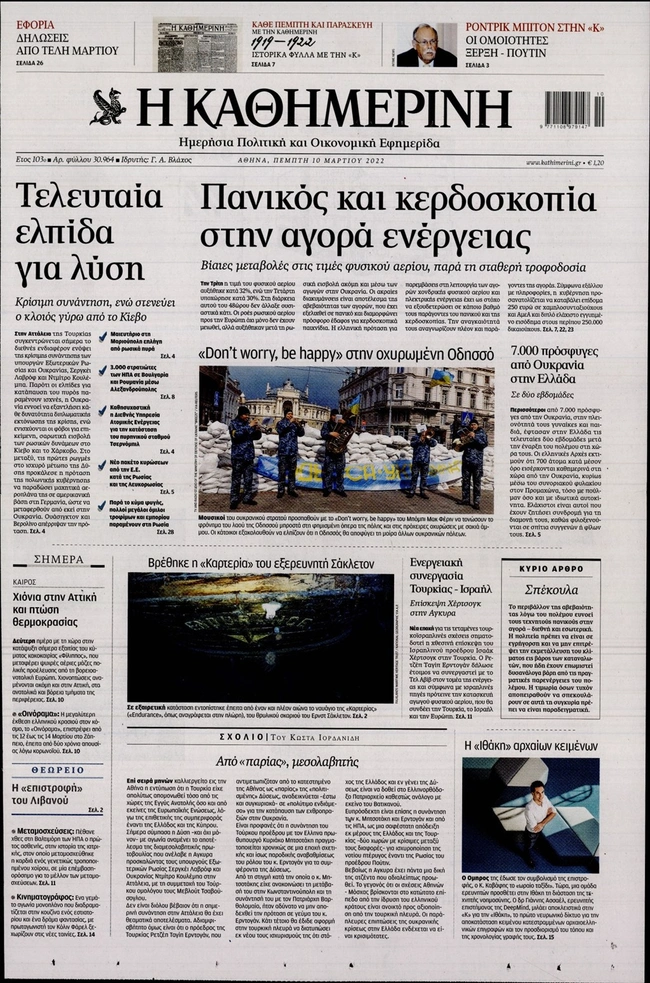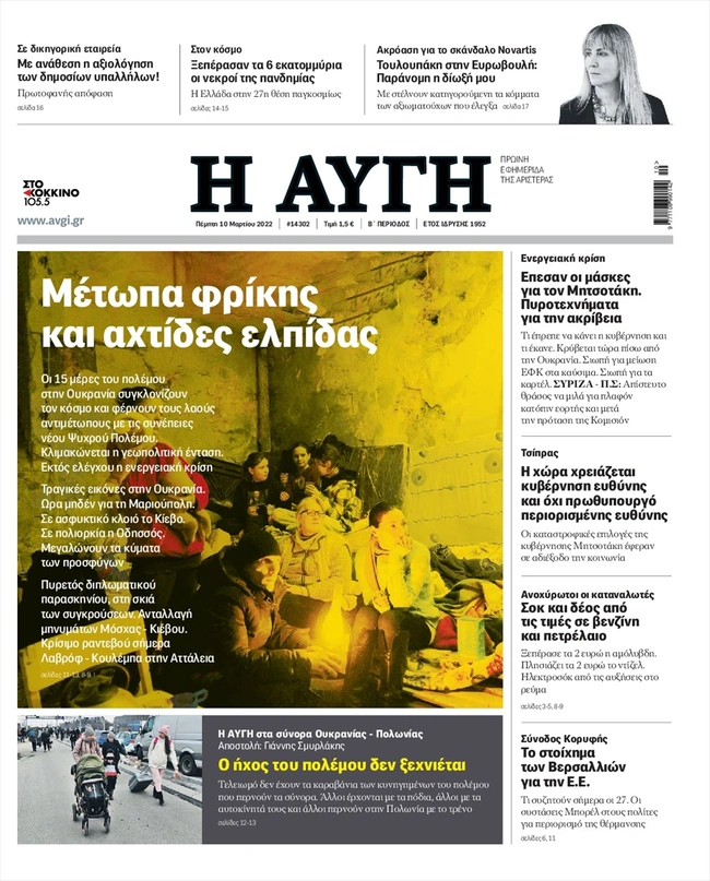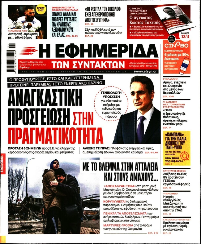 Τα πρωτοσέλιδα των ελληνικών εφημερίδων για σήμερα Πέμπτη 10 Μαρτίου. Δείτε τι φιλοξενεί στην πρώτη του σελίδα ο πολιτικός και οικονομικός Τύπος και τα θέματα της επικαιρότητας που ξεχωρίζουν