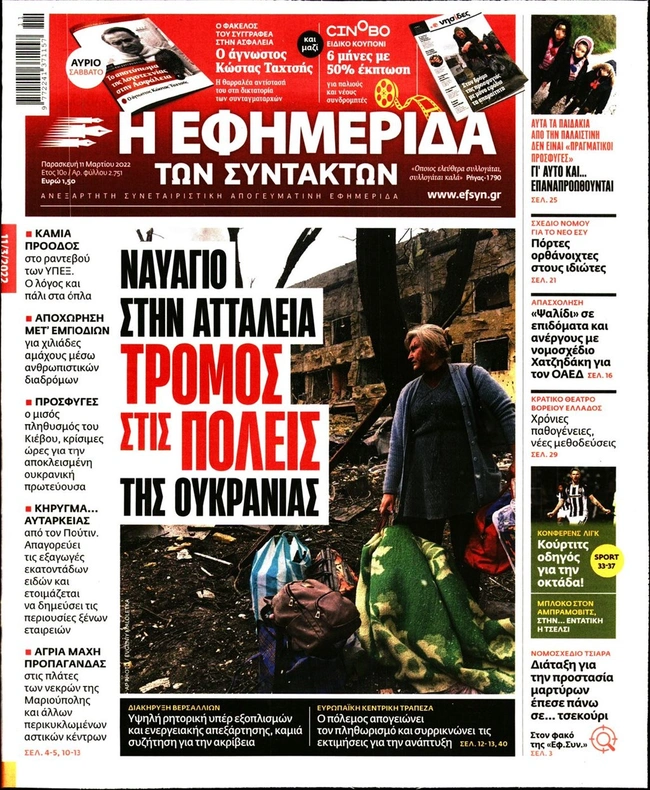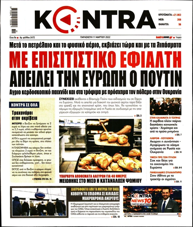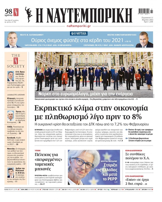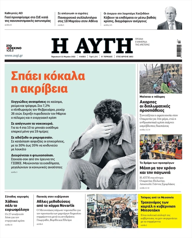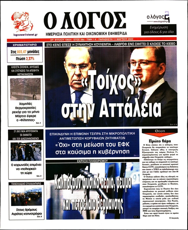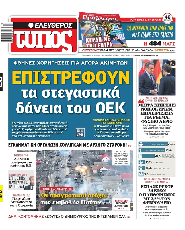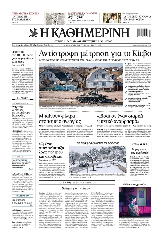 Τα πρωτοσέλιδα των ελληνικών εφημερίδων για σήμερα Παρασκευή 11 Μαρτίου. Δείτε τι φιλοξενεί στην πρώτη του σελίδα ο πολιτικός και οικονομικός Τύπος και τα θέματα της επικαιρότητας που ξεχωρίζουν.