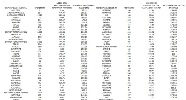 - Κεντρικός τομέας Αθηνών: 2.216 κρούσματα