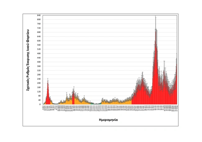 Όπως φαίνεται στα διαγράμματα που παρουσιάζει το ΑΠΕ/ΜΠΕ (επισυνάπτονται) το ιικό φορτίο των λυμάτων μετράται στο υψηλότερο επίπεδο των τελευταίων εβδομάδων και η ημερήσια τάση του τελευταίου δεκαημέρου είναι έντονα αυξητική και ταυτίζεται με τον ρυθμό ανόδου της Όμικρον 2.