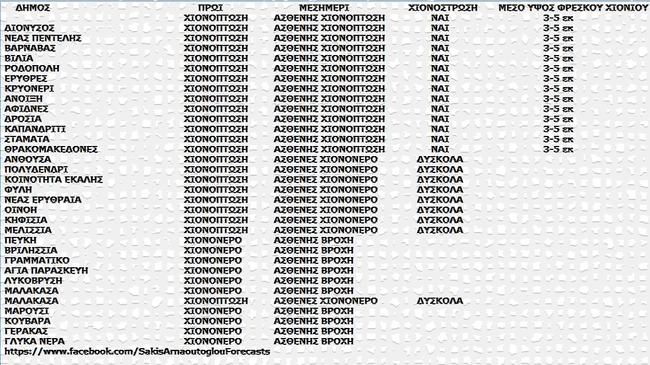 Κάνοντας κλικ στην εικόνα μπορείτε να δείτε τους δήμους με βάση το υψόμετρο τους (περιοχές που βρίσκονται πολύ κοντά μεταξύ τους πάνω από τα 250 περίπου μέτρα μπορεί να έχουν και χιονόπτωση) με την μεγαλύτερη πιθανότητα χιονόπτωσης και χιονόστρωσης το πρωί αλλά και το μεσημέρι αντίστοιχα: Περιμένω τα σχόλιά σας αύριο!», αναφέρει ο Σάκης Αρναούτογλου.