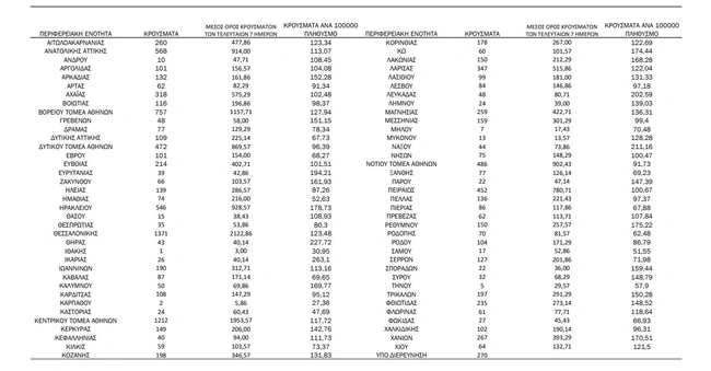 - Κεντρικός τομέας Αθηνών: 1.212 κρούσματα