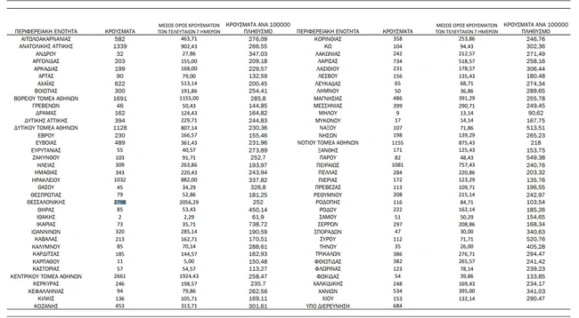 - Κεντρικός τομέας Αθηνών: 2.661 κρούσματα