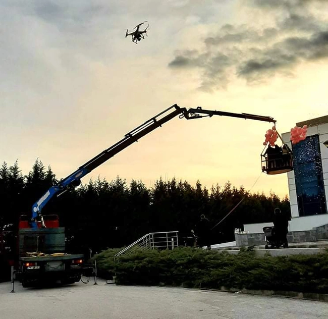 Χειριστής γερανού ήταν ο μπαμπάς της νεαρής λεχώνας. Ο 55χρονος Σάκης Μπάνιου, διασώστης ΕΚΑΒ, έχει δίπλωμα χειρισμού τέτοιων μηχανημάτων καθώς ασχολούνταν με το συγκεκριμένο επάγγελμα από το 1996. Έπιασε ξανά το τηλεχειριστήριο για τα μάτια της εγγονής του και ανέβηκε στο καλάθι μαζί με την οικογένεια, για μια ανύψωση στα δέκα μέτρα. «Ο γιος μου απέκτησε δίδυμα κοριτσάκια και τώρα ήρθε μια ακόμη νεράιδα», λέει, φορώντας το μπλουζάκι που του χάρισαν οι εγγονές του, με το λογότυπο: «ο πιο όμορφος παππούς».