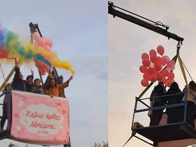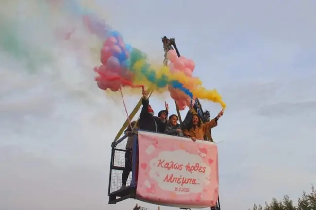 «Ήρθαν εσκεμμένα εκείνη την ώρα να μου μετρήσουν την πίεση και το οξυγόνο για να είμαι απασχολημένη. Ο σύζυγός μου είχε κλείσει και τις κουρτίνες -καθώς ήταν όλα προμελετημένα, και τη στιγμή που μιλούσα με τη μαία, ακούω απ' έξω μουσική, τραγούδια, κόρνες και φωνές. Ανοίγουν την κουρτίνα, με πηγαίνουν με το κρεβάτι μου δίπλα στο παράθυρο, μου φέρνουν τη μικρή αγκαλιά και βλέπω τα αγαπημένα μου πρόσωπα πάνω σε ένα καλάθι γερανού», περιγράφει με συγκίνηση η κυρία Μπάνιου. Η χαρά και η έκπληξη της νεαρής μητέρας ήταν απερίγραπτη και δεν μπορούσε να συγκρατήσει τα δάκρυα συγκίνησης που δέχτηκε με αυτόν τον ξεχωριστό τρόπο ευχές για τον ερχομό της πρωτότοκης κόρης της.