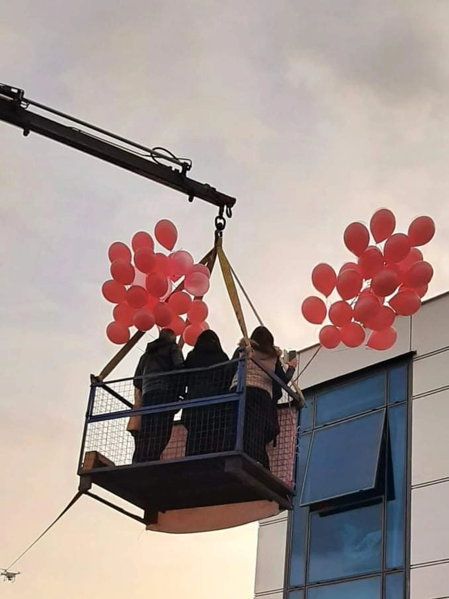 «Εγκέφαλος» της ιδέας ήταν η παιδική φίλη του παππού Θάλεια Παπαϊωάννου. Ήταν αυτή που σκέφτηκε τα πάντα και οργάνωσε την έκπληξη με τη βοήθεια δύο φίλων της και όπως είπε, μιλώντας στον ραδιοφωνικό σταθμό του Αθηναϊκού/Μακεδονικού Πρακτορείου Ειδήσεων «Πρακτορείο 104,9 FM», ήταν μια ιδέα της στιγμής, αλλά το αποτέλεσμα ήταν για όλους κάτι παραπάνω από συγκινητικό και συνάμα εντυπωσιακό. «Έπρεπε να πάμε τουλάχιστον απ' έξω. Σκέφτηκα, λοιπόν, ότι θέλω έναν γερανό και τον βρήκα. Επιπλέον πήραμε ό,τι ταιριάζει στην περίσταση: Μπαλόνια, ντουντούκες, καπνογόνα και πανό και ανοίξαμε μέχρι και σαμπάνιες», λέει χαρακτηριστικά.