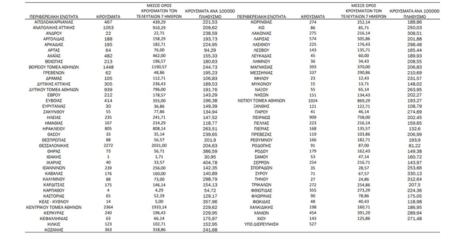 - Κεντρικός τομέας Αθηνών: 2.364 κρούσματα