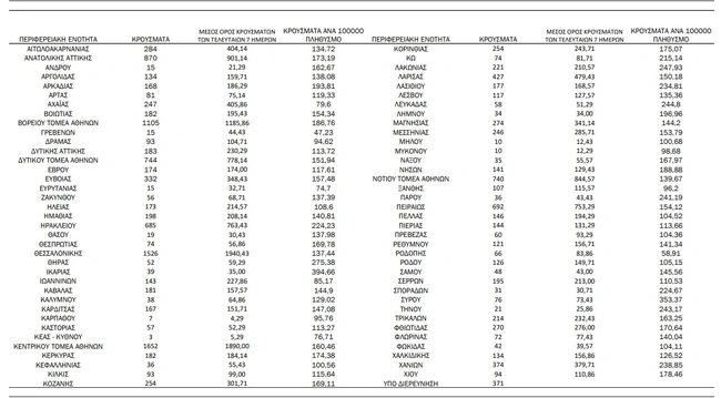 - Νήσων: 141 κρούσματα