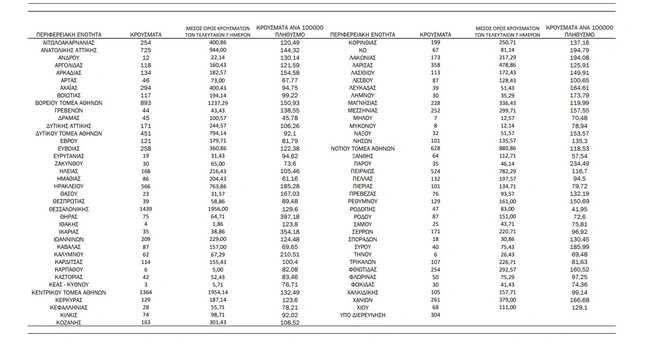 - Νήσων: 205 κρούσματα