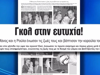 «Οι ματιές τους συναντήθηκαν στο γήπεδο την ώρα του αγώνα. Εκεί ένιωσαν το πρώτο τους σκίρτημα και λίγους μήνες μετά ήρθε στη ζωή τους ο καρπός του έρωτά τους». Με αυτά τα λόγια παρουσιάζει ο αρθρογράφος της εφημερίδας «Η Γνώμη», το ολοσέλιδο αφιέρωμα για τον γάμο της Ρούλας και του Μάνου που έγινε στις 4 Οκτωβρίου του 2014. Ένας έρωτας που έβαλε «Γκολ στην Ευτυχία!», όπως αναφέρει χαρακτηριστικά η εφημερίδα, με πολλές στιγμές από τον γάμο τους.