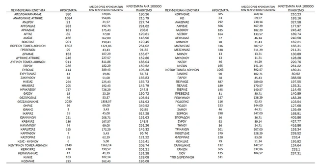 - Ανατολική Αττική: 1.084 κρούσματα