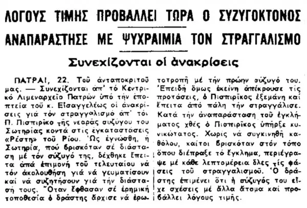 Η ελληνική κοινωνία παρακολουθεί σοκαρισμένη τις τελευταίες εξελίξεις γύρω από την υπόθεση των τριών νεκρών παιδιών στην Πάτρα, καθώς η μητέρα της, Ρούλα Πισπιρίγκου, οδηγήθηκε στη ΓΑΔΑ και ασκήθηκε δίωξη για ανθρωποκτονία από πρόθεση εναντίον της μετά την αποκάλυψη ότι η Τζωρτζίνα πέθανε από κεταμίνη. Κι, όμως, παρά το σοκαριστικό έγκλημα, φαίνεται πως αυτό δεν ήταν το πρώτο που διαπράχθηκε στην οικογένεια Πισπιρίγκου. Πριν από 67 χρόνια, ο παππούς της σκότωσε τη γιαγιά της στην Πάτρα, ενώ μάλιστα παρουσιάστηκε «απαθής μέχρι αναισθησίας» στον εισαγγελέα, όπως αναφέρουν δημοσιεύματα της εποχής.