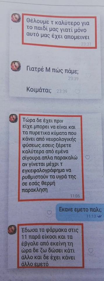 «Θέλουμε το καλύτερο για το παιδί μας γιατί μόνο αυτό μας έχει απομείνει...» Αυτο το παραπλανητικό SMS με ψευδή έκκληση κι επίκληση για βοήθεια κι επίδειξη ενδιαφέροντος έστελνε όπως αποκαλύπτει «Το Βήμα» η Ρούλα Πισπιρίγκου σε γιατρούς λίγα 24ωρα πριν την δολοφονία της 9χρονης Τζωρτζίνας, σύμφωνα με τις δικαστικές Αρχές. Τις ίδιες μέρες είχε στείλει άλλο SMS που απέδιδε τα ανεξήγητα επεισόδια υγείας που φαίνεται ότι η ίδια προκαλούσε στην κόρη της σε «πυρετικά κύματα που κάνει λόγω νευρολογικής φύσεως». Επιπλέον, εξέφραζε δήθεν αγωνιώδη ερωτήματα για τις βραδυκαρδίες και τις υπόλοιπες καρδιακές αρρυθμίες που παρουσίαζε η 9χρονη, η οποία όπως αποδείχθηκε δεν αντιμετώπιζε κανένα καρδιολογικό πρόβλημα...