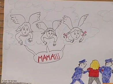 Μία ζωγραφιά που κάποιος τοποθέτησε έξω από το σπίτι της Ρούλας Πισπιρίγκου και του Μάνου Δασκαλάκη, αποτελεί μία ακόμη «γροθιά στο στομάχι» στην υπόθεση με τα νεκρά παιδιά στην Πάτρα. Ενα σκίτσο που απεικονίζει τα τρία παιδιά του ζεύγους που πέθαναν σε διάστημα λίγων χρόνων, ως αγγέλους στον ουρανό παρακολουθούν τη μητέρα τους να κρατείται από αστυνομικούς. Το πιο σπαρακτικό όμως απ' όλα είναι το «Μαμά» που λένε με μία φωνή, σε μία υπόθεση που έχει συγκλονίσει το πανελλήνιο.